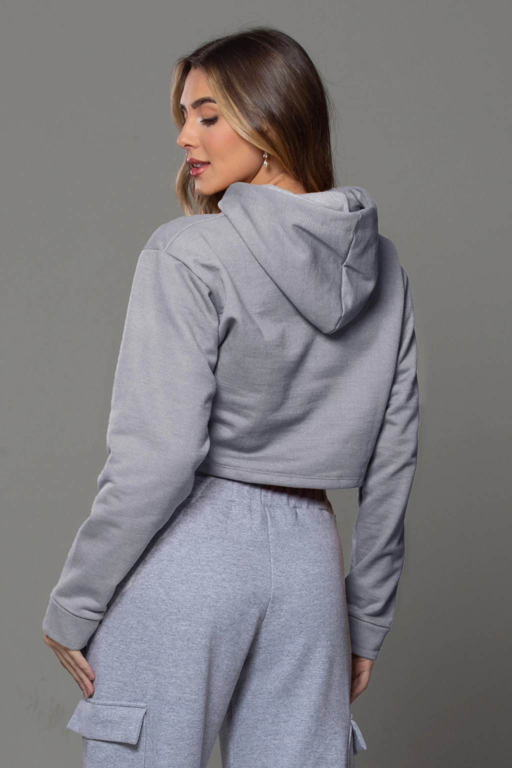 A blusa cropped de moletom com capuz é uma peça moderna e versátil para adicionar ao seu guarda-roupa. Com suas mangas longas e fenda lateral, oferece conforto e estilo ao mesmo tempo. O capuz ajustável permite um ajuste personalizado, proporcionando proteção extra nos dias mais frios. Perfeito para combinar diferentes peças, este blusão cropped adiciona um toque contemporâneo a qualquer look casual ou esportivo.