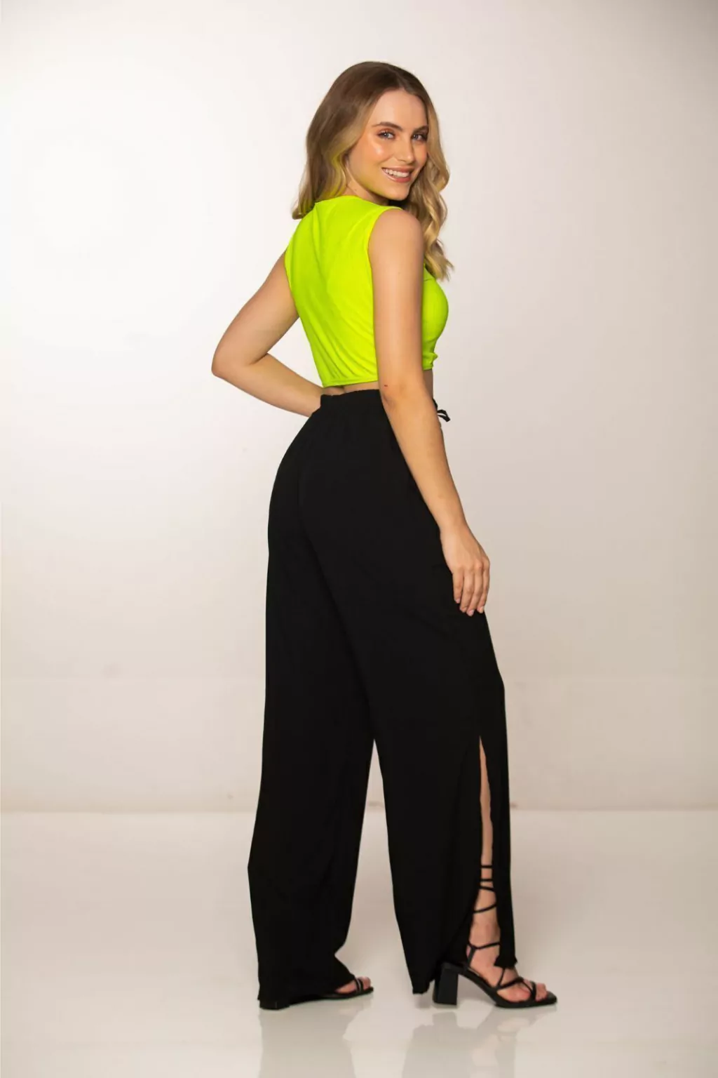 Eleve seu estilo com nossa calça pantalona em viscose com fenda, a peça que faltava no seu guarda-roupa! Desenvolvida para mulheres que valorizam moda e conforto, essa peça é perfeita para diversas ocasiões.